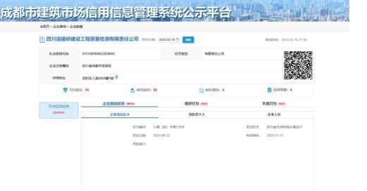 根據2021年印發的《成都市建設工程質量檢測機構及檢測人員信用評價管理辦法》,成都市建筑市場信用信息公示平臺綜合考慮檢驗檢測機構在經營期間各項表現,獲得表彰、人員管理、設備管理、檢驗檢測環境管理、檢測能力驗證、檢測報告管理、資質運行等26個項目進行評價,力求全面客觀評價檢驗檢測機構綜合能力。信用評級結果分為4,最高等級為A類,表示誠信度較高各項評價指標較好質量管理水平較好社會信譽較高