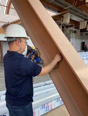 2月底,市建科院公司接到委托,需在45天完成對豐都港務樓排危加固改造工程鑒定、檢測全過程服務,確保豐都廟會開幕式于422日正式開始。由于時間緊、任務重,為保證廟會順利開展,市建科院公司成立了由多名專家組成的專項檢測技術小組進行全過程跟蹤,并于當日晚上趕赴現場,與當地質監站、委托方、監理進行技術溝通交流后,擬定了專項檢測方案,迅速投入到檢測工作中,對樁基礎采用聲波透射法進行了樁身完整性檢測;對上部主體鋼結構采用游標卡尺、卷尺、皮尺等尺寸測量工具以及金屬超聲波測厚儀、超聲波焊縫探傷儀、涂膜厚度測試儀等檢測儀器,檢查了鋼結構構件的尺寸和規格情況,檢測鋼結構構件外觀及內部質量缺陷等,如期完成工作任務,為豐都廟會開幕式順利開展提供了安全保障,推動了重慶優秀傳統文化創新性發展、旅游業發展。