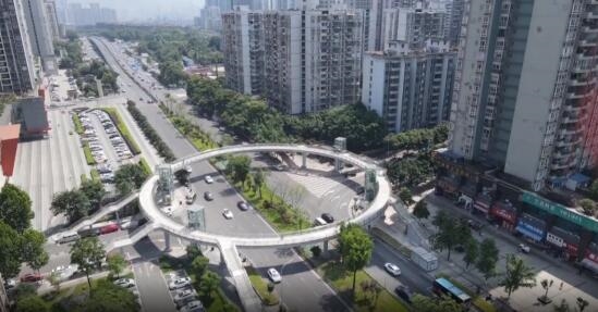 鳳凰灣人行天橋位于萬科悅灣小區與鳳凰灣小區之間。天橋投用后,有效解決周邊居民出行問題,天橋新穎的外觀設計也提升了城市景觀。