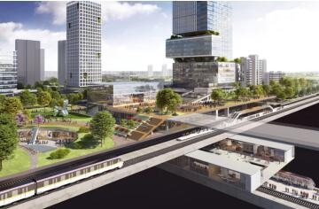 作為成都首批次場站綜合開發(fā)的14個TOD示范項(xiàng)目之一,成都行政學(xué)院站TOD總投資超150億,項(xiàng)目位于成都東進(jìn)橋頭堡,以站點(diǎn)為核心,周邊半徑3公里范圍內(nèi)共規(guī)劃有6條軌道線。成都行政學(xué)院TOD是成都東西向干線2號線(已運(yùn)營)和成都第二條環(huán)線9號線(規(guī)劃)的換乘站點(diǎn)。根據(jù)《成都市軌道交通場站一體化城市設(shè)計(jì)導(dǎo)則》,行政學(xué)院站為組團(tuán)級站點(diǎn)。項(xiàng)目由大型商業(yè)綜合體、五星級酒店、超甲辦公、創(chuàng)意街區(qū)、住宅、學(xué)校等業(yè)態(tài)構(gòu)成,以“東進(jìn)門戶、創(chuàng)驛綠谷”為主題打造為以公共交通結(jié)合慢行體系為主要出行方式的“活力中心”。結(jié)合功能板塊,形成“交通圈”“商業(yè)圈”“生活圈”相互支撐的城市格局。通過加強(qiáng)站點(diǎn)與產(chǎn)業(yè)功能區(qū)銜接,提升營商環(huán)境、吸引高端要素聚集,打造創(chuàng)新開敞空間;健康運(yùn)動場景依托豐富的綠色資源,滿足多層次人群需要的體育運(yùn)動場景,完善綠道體育消費(fèi)新場景;生活娛樂場景提供多種業(yè)態(tài)布局,同時(shí)強(qiáng)調(diào)多元、互動、公共性,提升街區(qū)的活力。