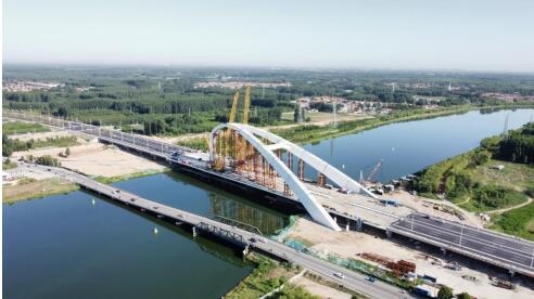 香河縣安石路王家擺大橋主拱拱肋順利合龍